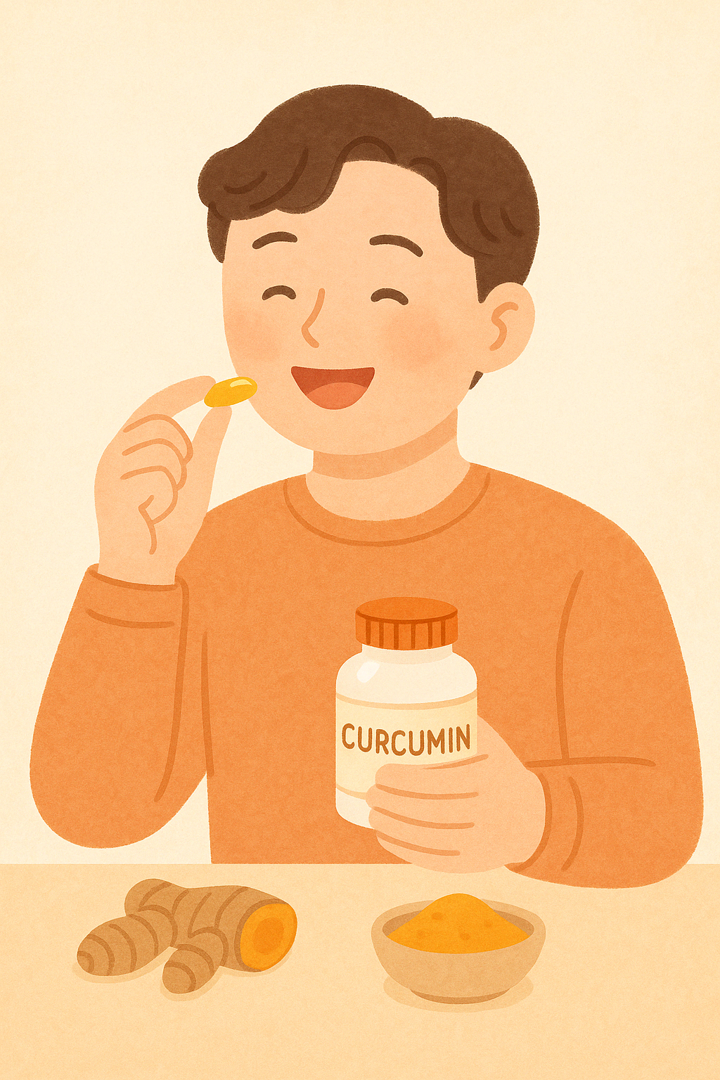 커큐민은 강황 그대로 먹으면 체내 흡수율이 낮은 편이에요.