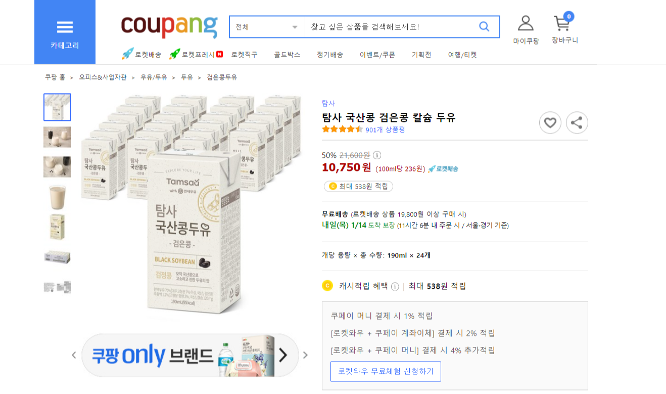 마침 쿠팡에서 국내산 두유가 저렴하게 팔길래 구입한
