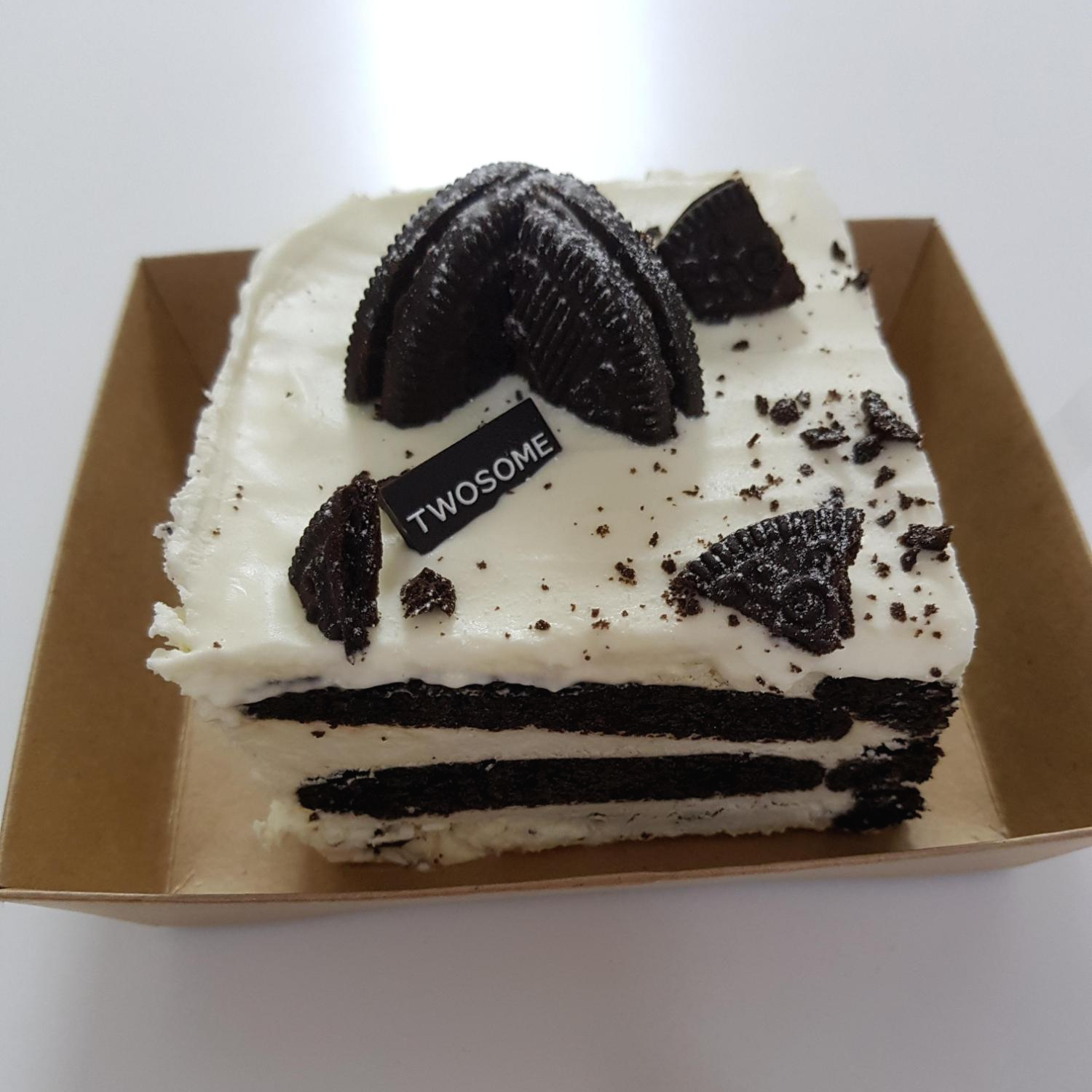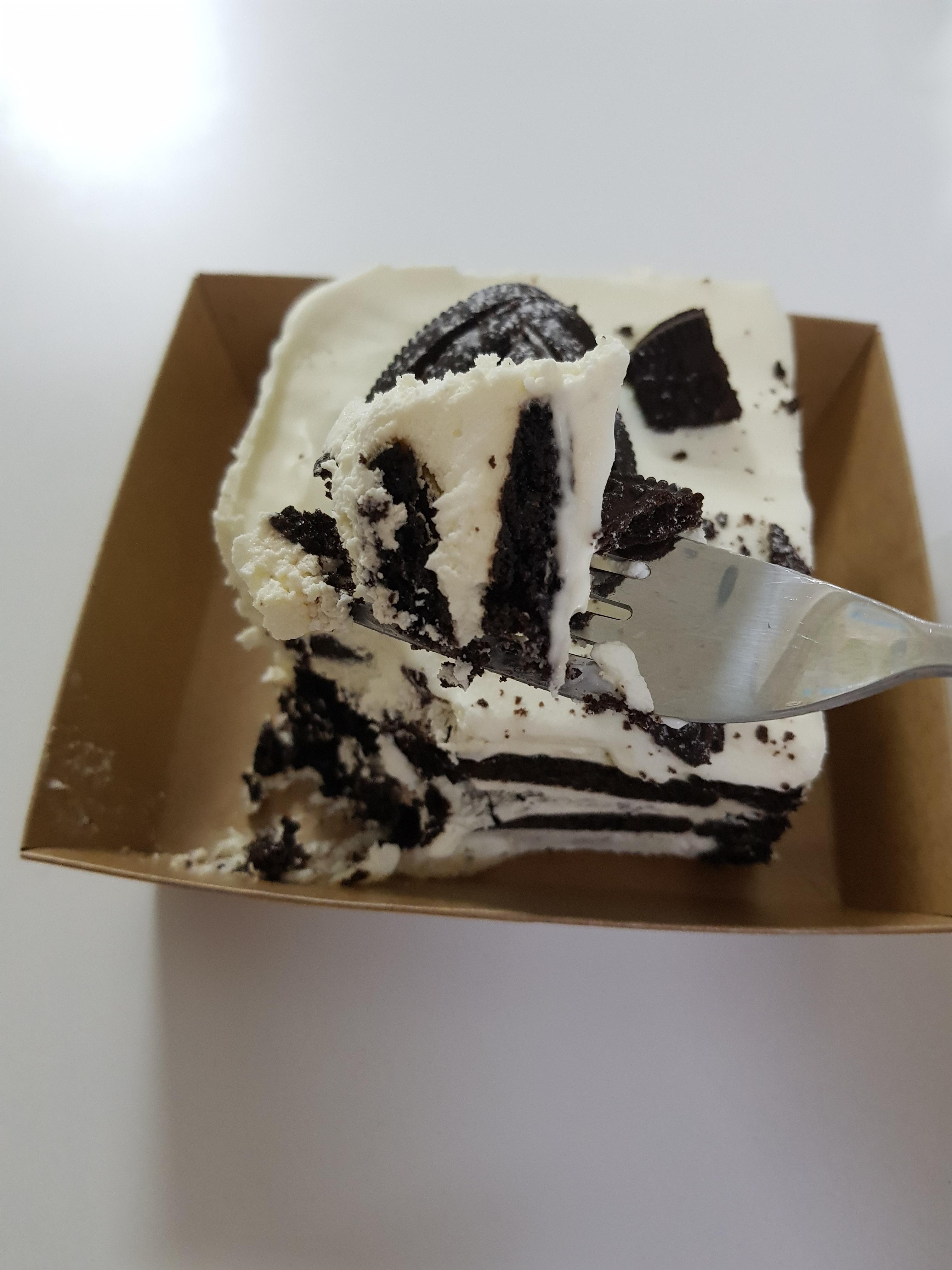 블랙쿠키가 크림사이에 있어서 꾸덕한 질감의 케이크 입니다