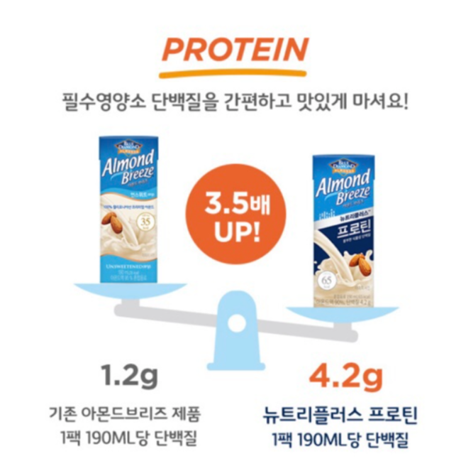 기존 아몬드 브리즈에 비해 3.5배가 단백질이 더 많더라구요