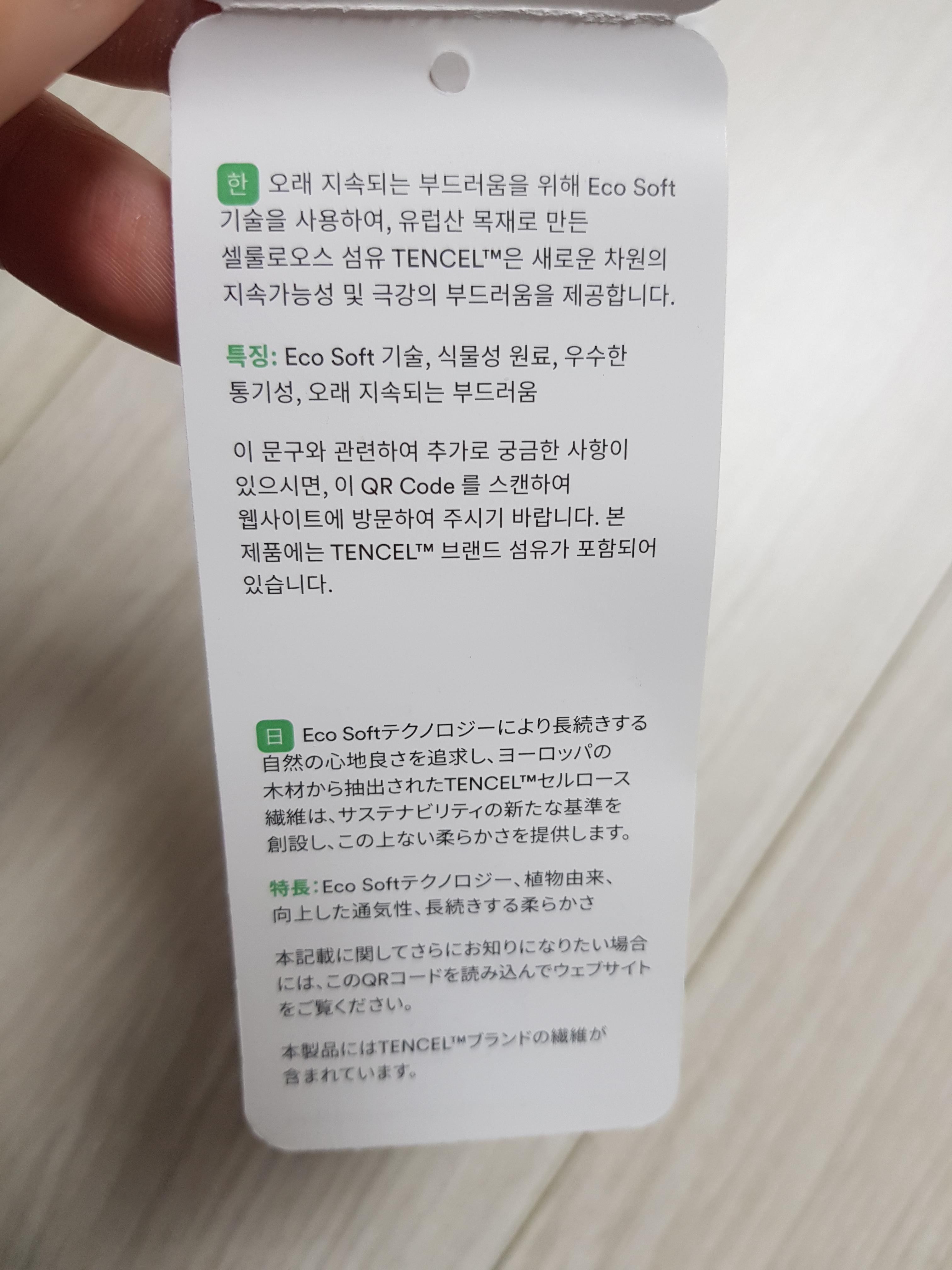소재는 텐셀, 면, 폴리우레탄으로 만들어진 제품 입니다