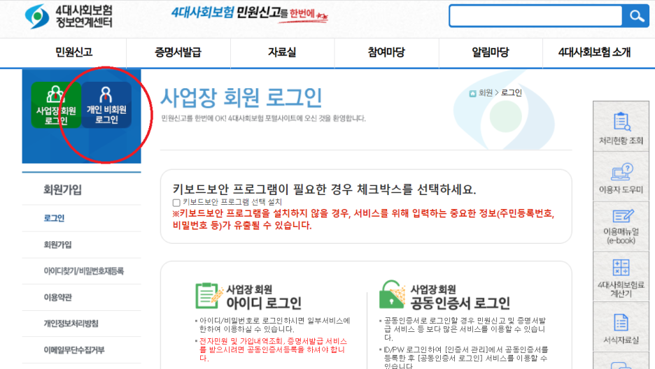 직장가입자의 사업장 관리 번호와 사업장 명칭이 뜹니다