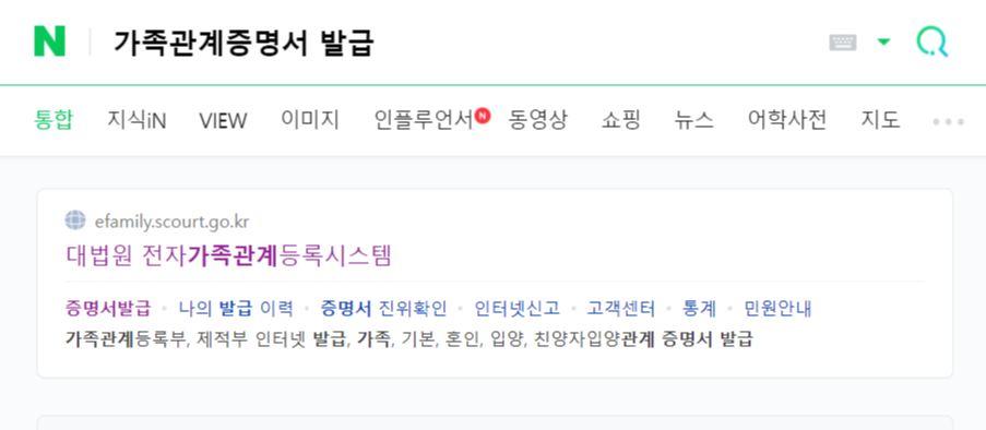 (가족관계증명서는 반드시 피부양자 기준으로 띠어야 합니다)