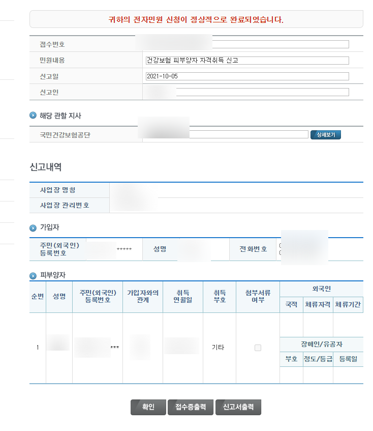 접수증 출력도 가능하고 신고서 출력도 가능해요(쓸데없음)