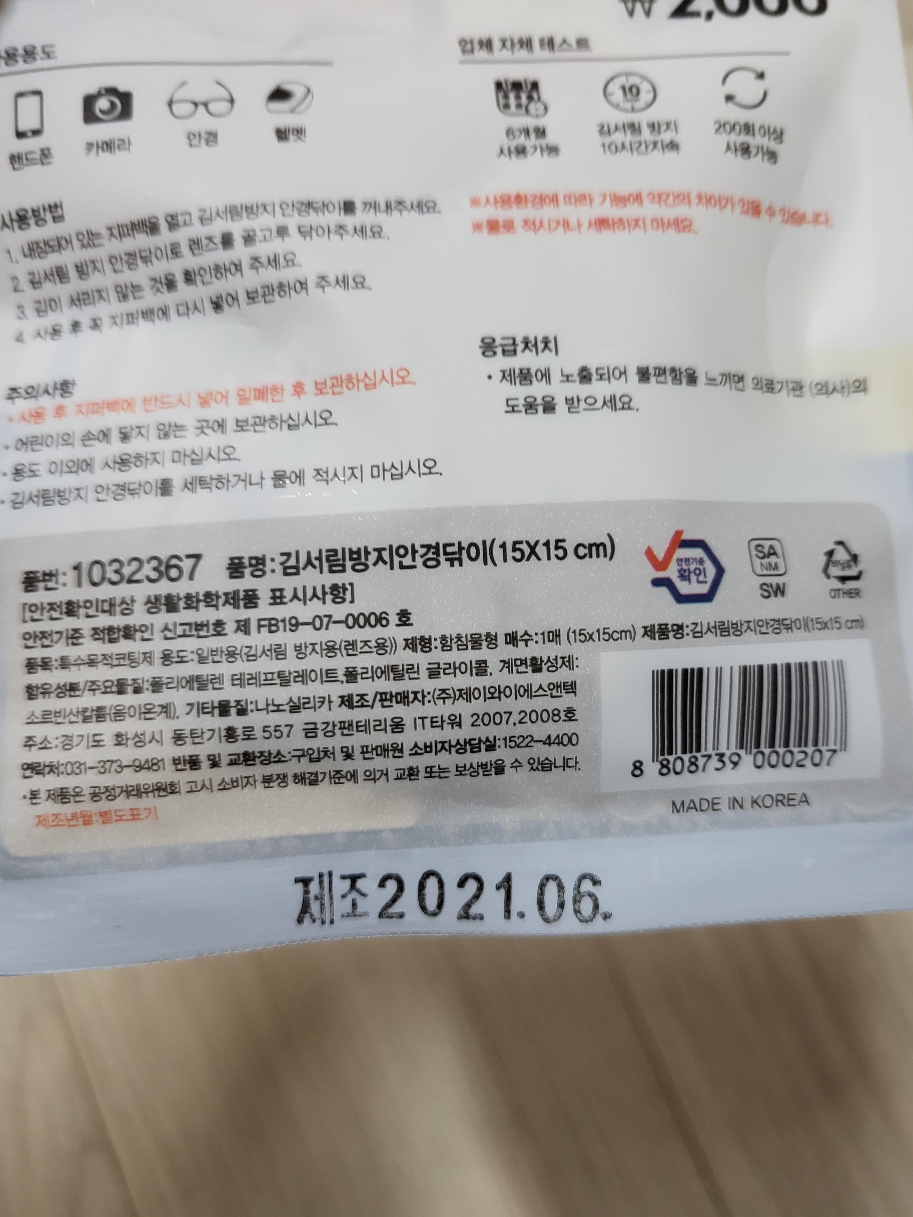 운동하다가 다이소로 들어가서 구입한 김서림 방지 안경 닦이에요