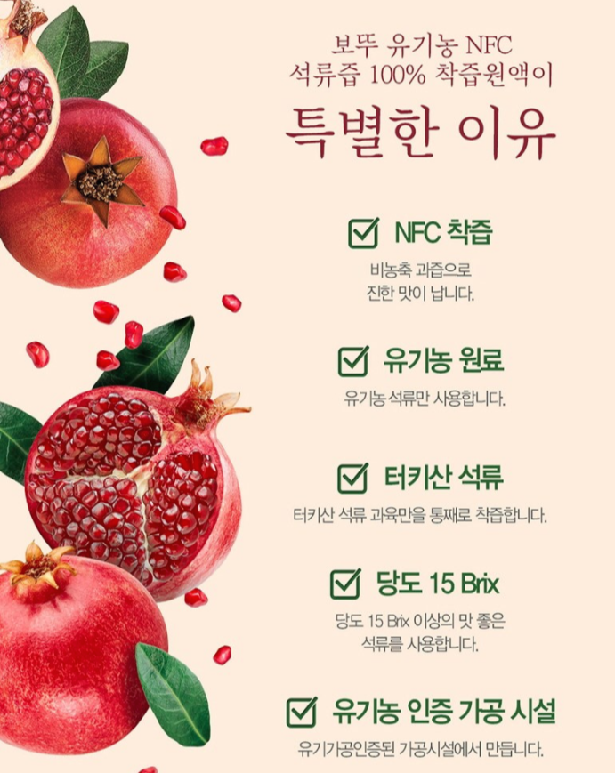 석류 100% 착즙원액에 유기농 석류를 이용했다고 해서