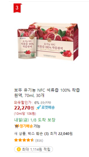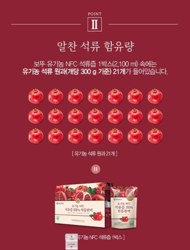 보뚜 유기농 석류즙 30개에는 석류 21개가 들어있데요!!!