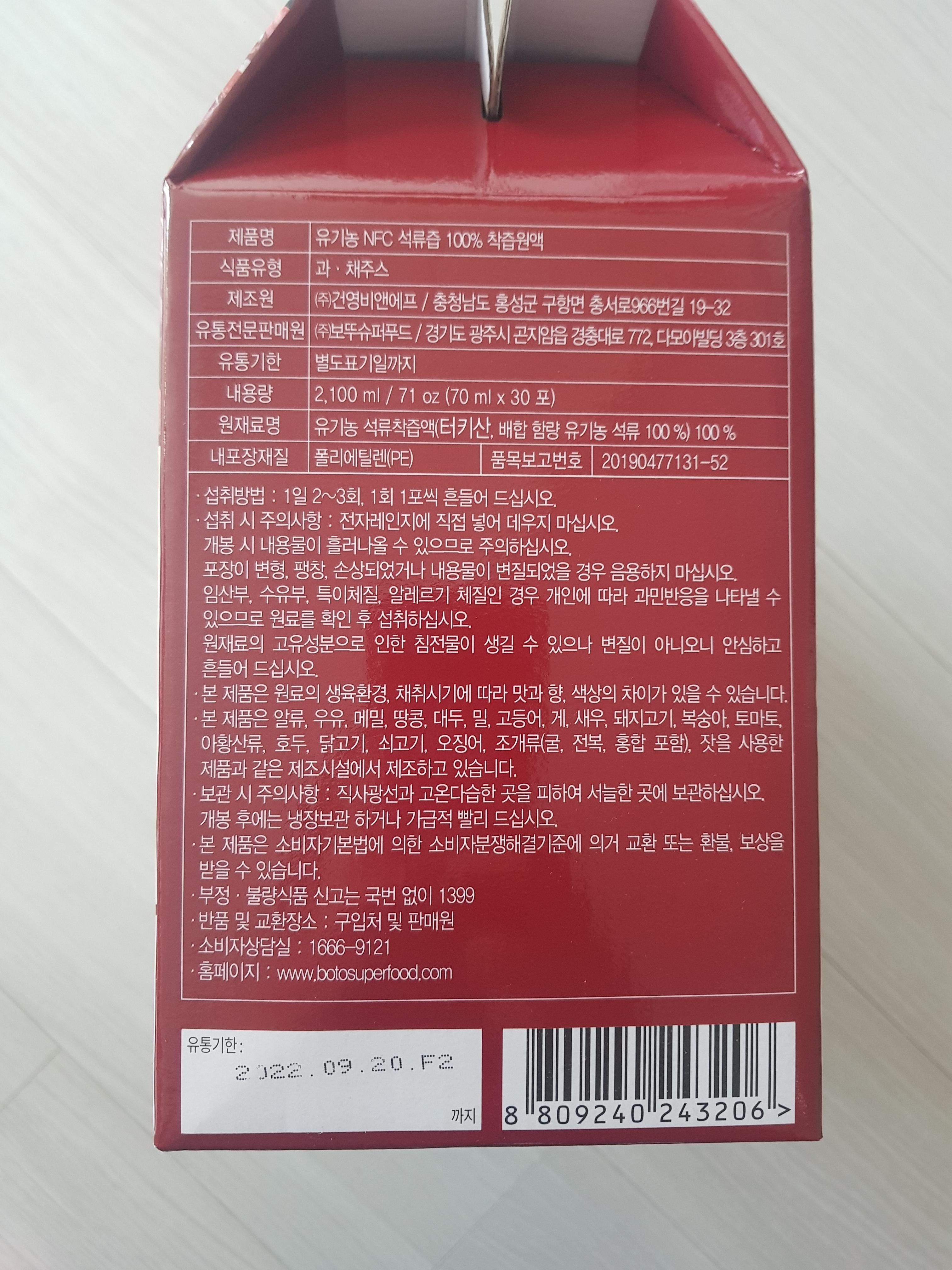 보토 유기농 NFC 석류즙 100% 착즙원액 후기 입니다.
